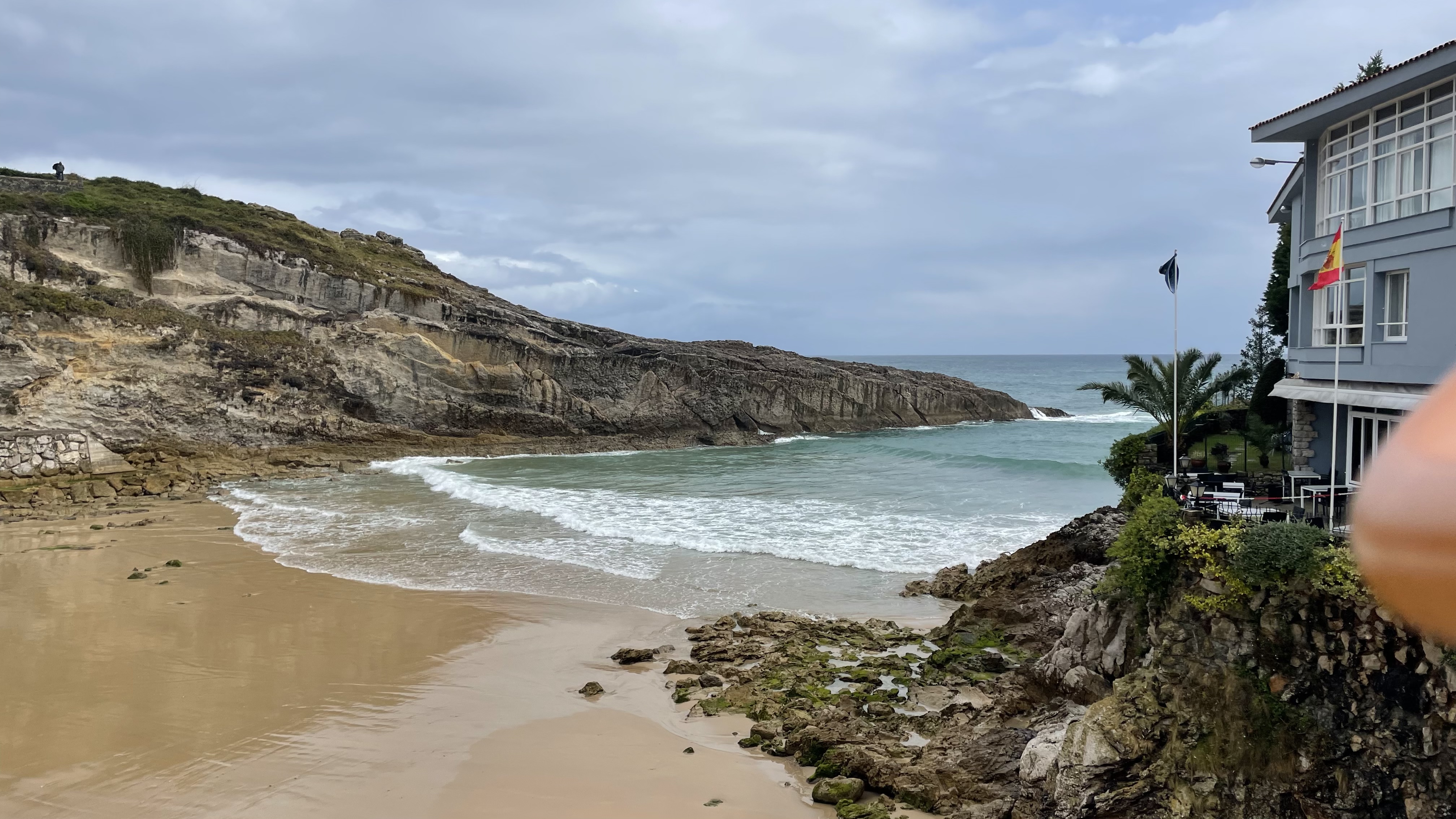 Kui me keskpäeval mere äärde jõudsime laius Gijonis tohutu lai liivarand. Mere ääres puhul hullult tugev ja külm tuul, seega otsustasime esimese asjana asjad hotelli viia ja end korralikumalt riidesse panna. Paari tunni pärast samas kohas randa jõudes, käisid lained juba vastu kaldarinnatist. Kogu liivarand oli kadunud. Nerjas ei näe mitte kunagi midagi sellist.